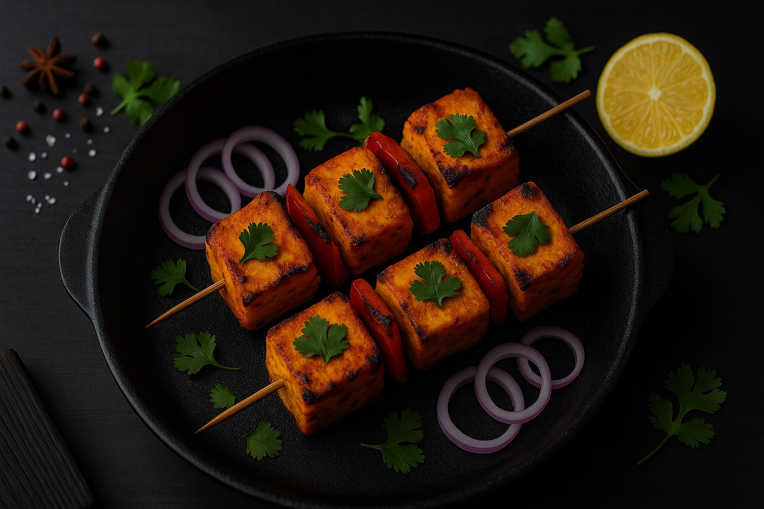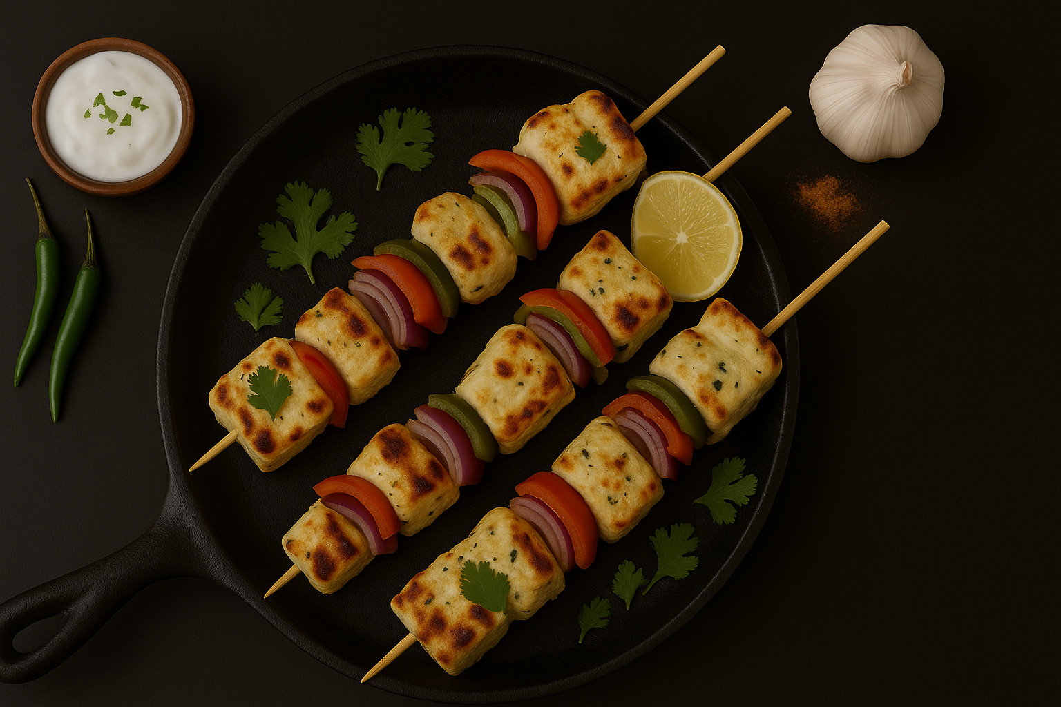 Marinated paneer cubes, grilled to smoky perfection.