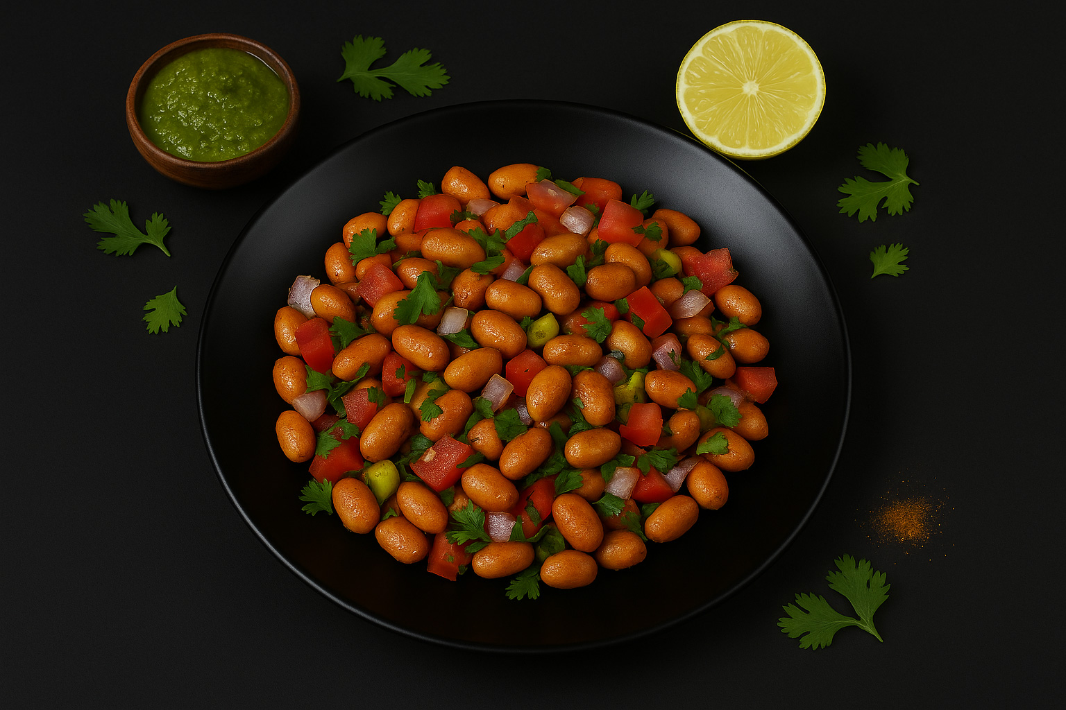 Roasted peanuts with vegetables, chutneys, and spices.